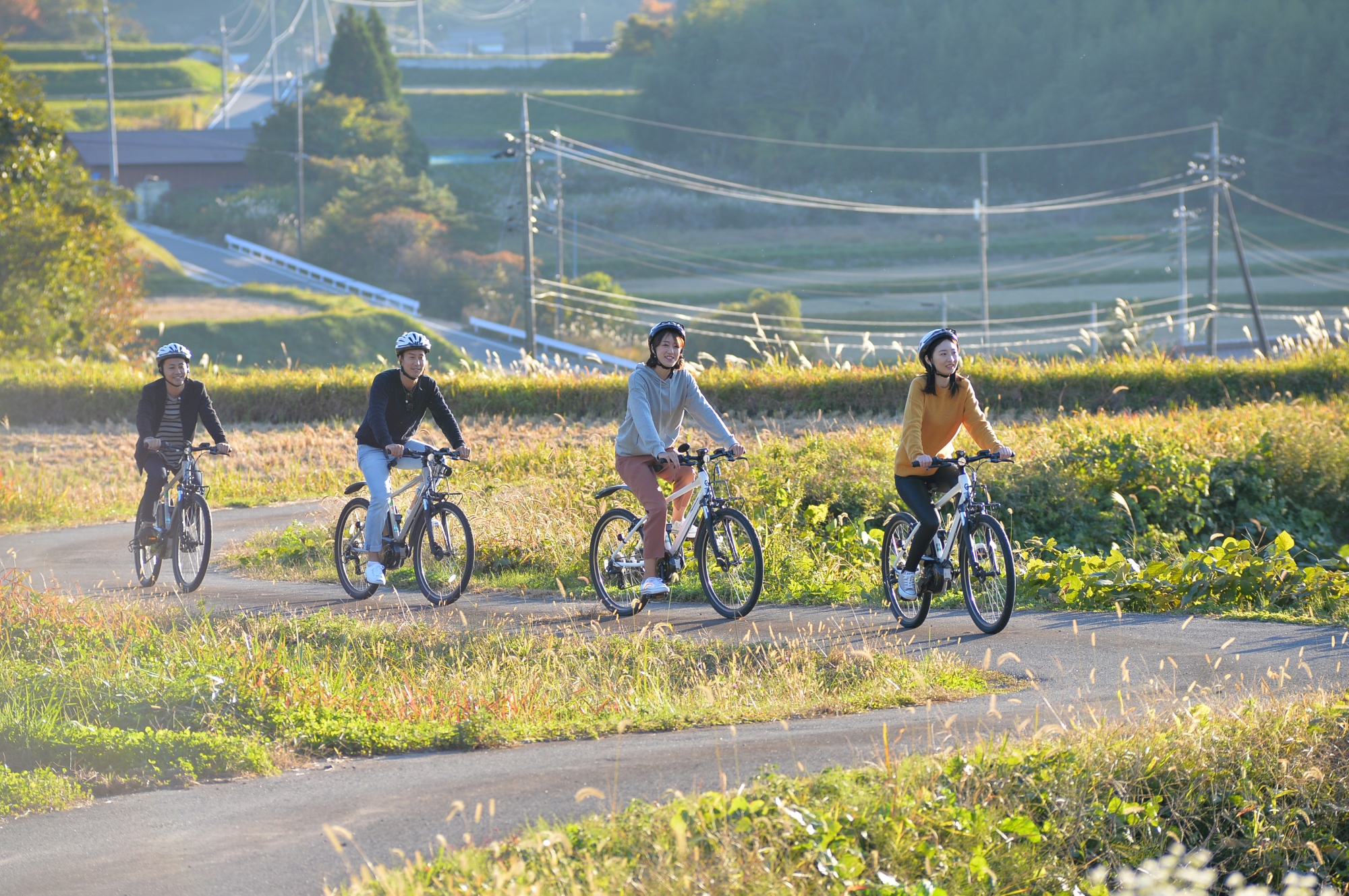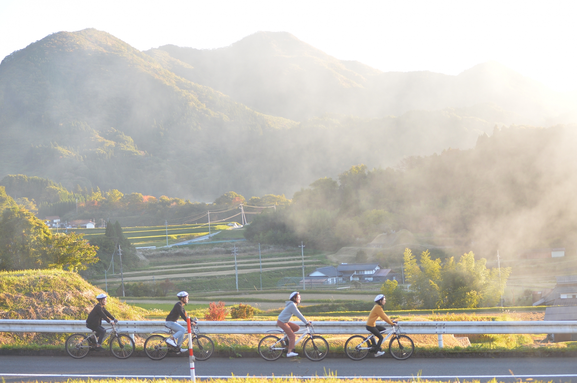 農林水産省が選定した「つなぐ棚田遺産」に選ばれた「比和 三河内の棚田」を巡るサイクリングツアーになります。三河内の町の外周を走りながら、町の名前の由来や、鉄穴流しで出来た鉄穴残丘の風景のガイドを受けながらサイクリングをします。