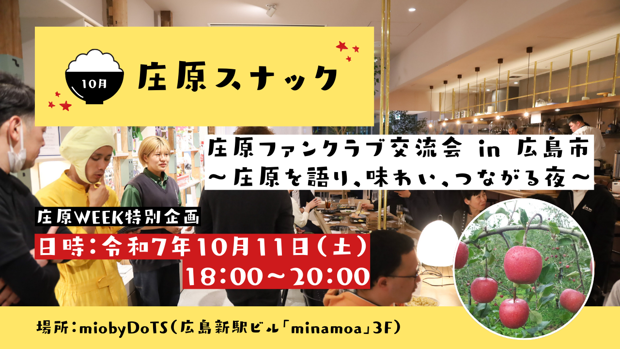 2025年10月7日(火)~10月12日(日)「庄原ファンクラブweek~つながる・集う・味わう~in miobyDoTS」を開催します。