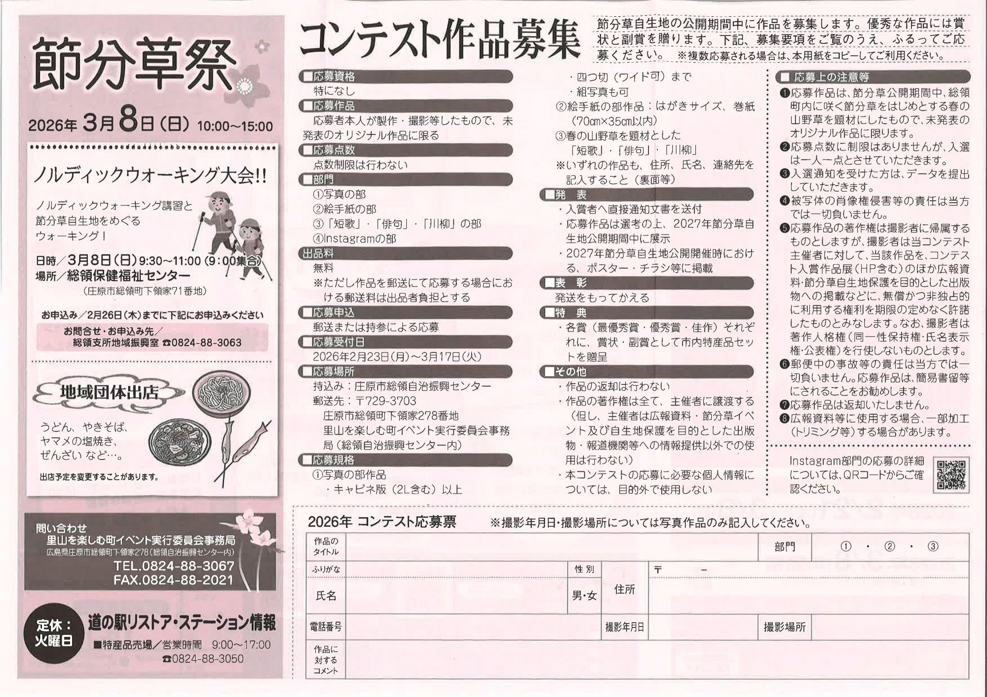 | 場所 | 道の駅リストア・ステーション/節分草公開自生地総領町内7か所 |