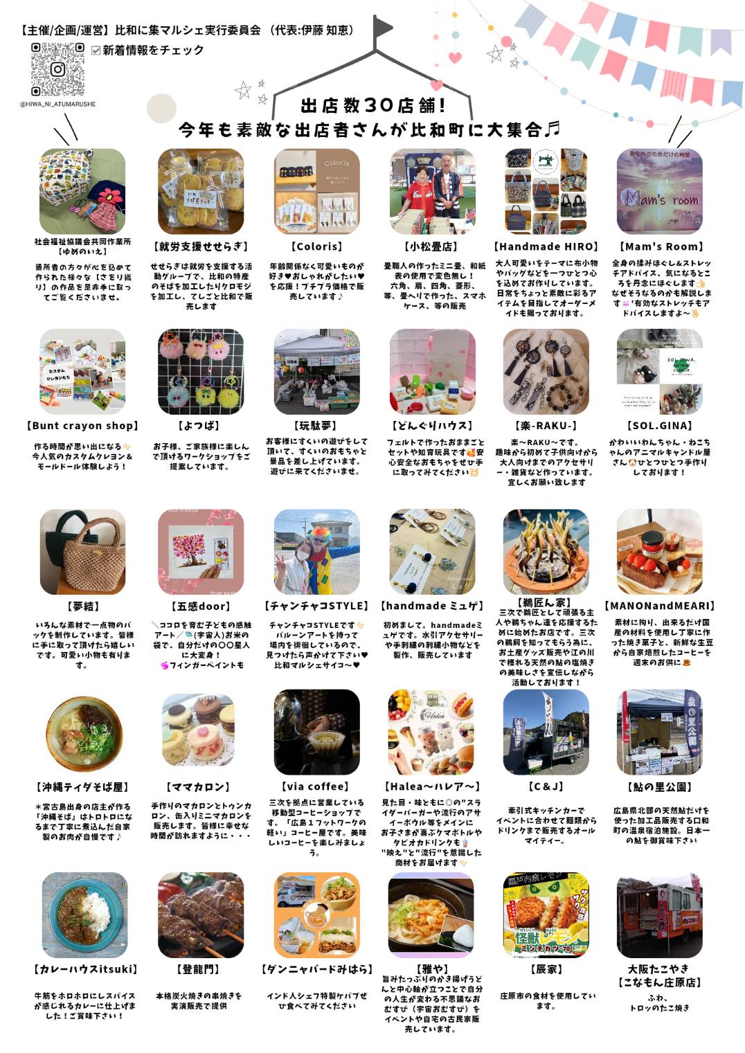 | お問い合せ | 比和に集マルシェ 公式Instagramから https://www.instagram.com/hiwa_ni_atumarushe/ |