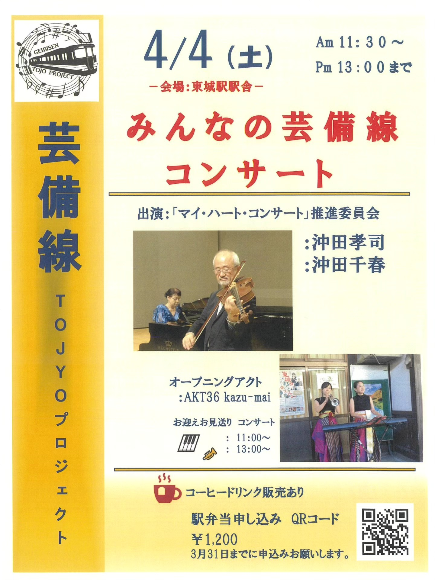 JRのお迎えコンサートから始まり、ヴィオラ・ピアノ奏者が奏でる温かい音楽で、芸備線の魅力を再発見!ぜひお立ち寄りください。