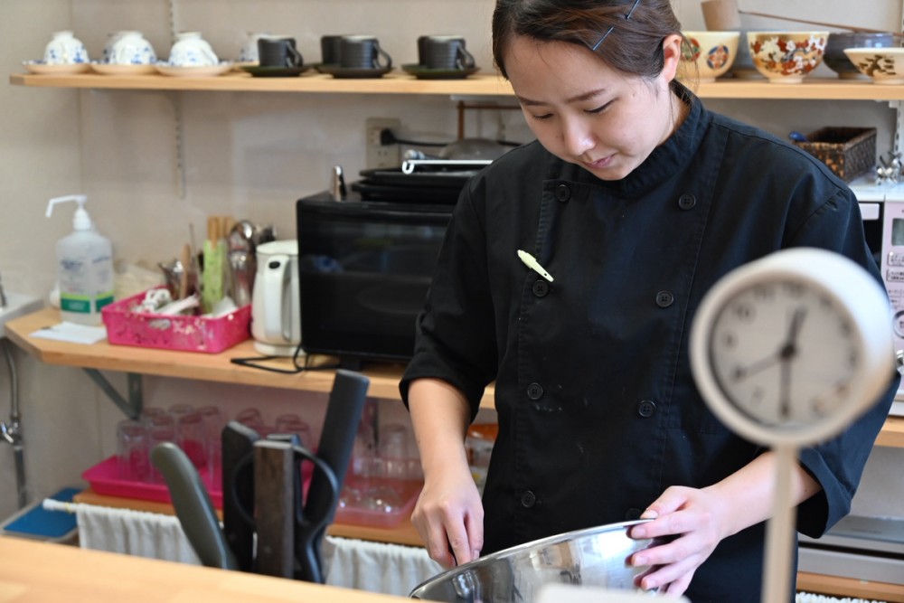 お店のスイーツを担当するのは、パティシエの川内 舞菜(かわうち・まいな)さん。高校卒業後から現在に至るまでパティシエ一筋で働いてきた生粋のスイーツ好きで、お店の新メニュー開発まで任せられる腕前です。