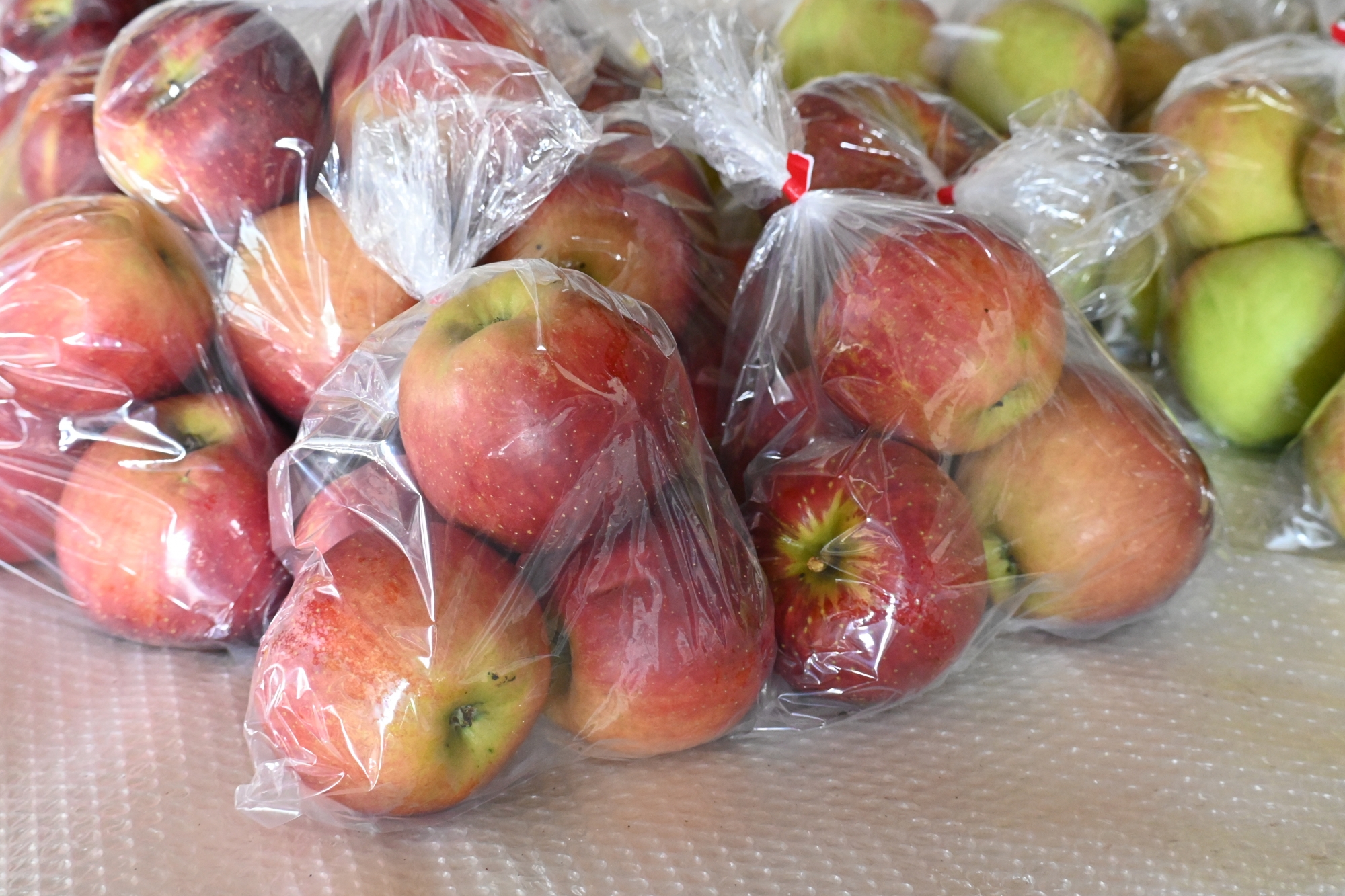 直売所が最も賑わうのが11月頃で、王道の「サンふじ」がメイン。果実が大きめで色づきよく、香りも食味も優れた品種のため安定した人気を誇ります。
